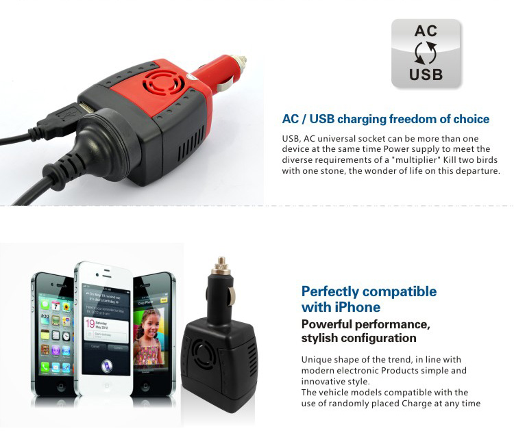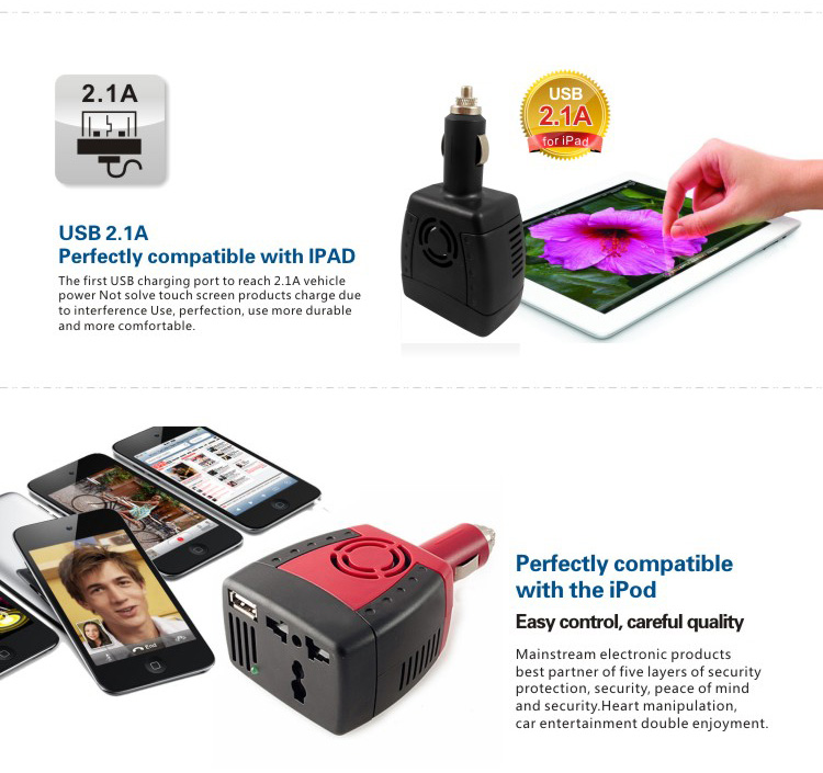 12V DC to 110V AC inverter 150W Car Power Inverter with USB 2.1A