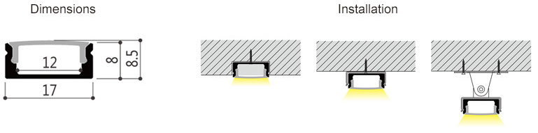 17x08mm Low Profile Surface Mount LED Profile Housing for LED Strip Lights - LS1708 Series