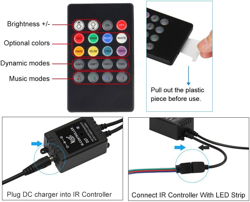 Meanwhile you could adjust brightness, static colors and color changing effects via infrared remote control