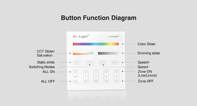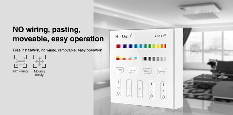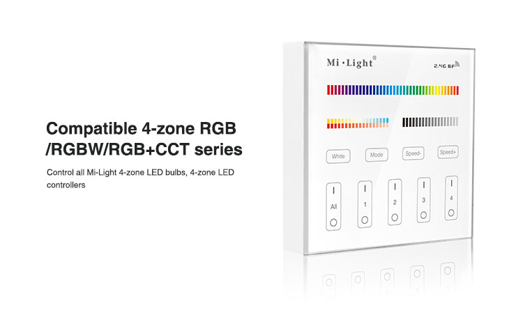 Mi-Light 4 zone RGB+CCT smart panel remote controller B4 specification