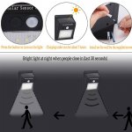 Waterproof IP65 and Durable:  The outdoor solar lights is water resistant and heat-resistant. A great solar security light for outdoor patio, garden, deck, yard, drive, outside wall, fence etc