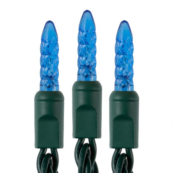 These mini LED Christmas lights have 50 faceted M5 bulbs. Connect up to 40 strands together. The 25' strands (24' lighted length) have 6" bulb spacing, green wire, and are individually fused to prevent multiple blown strands in the event of a power overload. Individual bulb failure will not cause others to fail. These LED string lights consume 90% less energy than traditional incandescent strands and last 25 times longer. Each shatterproof bulb is made into the strand (not removable), which eliminates the chance of corrosion. Use these string lights indoors or out for anything from Christmas, Halloween, and Valentine's Day to party and patio lighting. Strands are available in blue, red, green, warm white, and pure white colors.