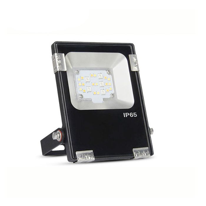 The RGBWW 10W LED floodlight is a multicolour LED floodlight with the ability to change the colour temperature with the Mi-Light (radio remote control, wall panel or Wi-Fi module). LED floodlights are based on SMD LEDs that emit the light output of 750-900lm. This illuminator will perfectly suit the outdoor lighting of a variety of architectural objects, parks or public spaces, giving a decorative accent of illuminated space. Works with Mi-Light series controllers.