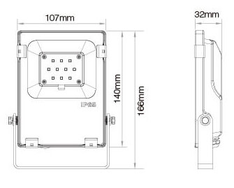 Dimensions 107mm x 32mm x 166mm