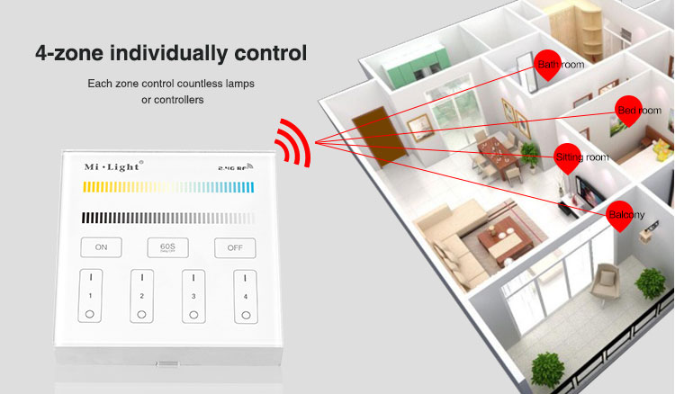 Mi-Light 4-Zone CCT adjust smart panel B2 specification