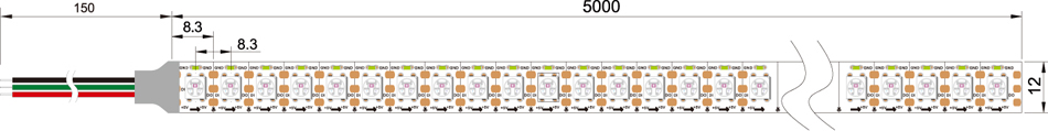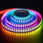This Addressable SK6812 Color-Chasing Digital RGB LED Light Strip Implementation of 7 colour change at the same time can have a pure white light. Single point of single control, high gray level, and can achieve a variety of beautiful effect. Its powerful lighting function to make it more valuable for different application areas. it perfect for cabinet lighting, under-cabinet lighting, toe-kick lighting, cove lighting, bias lighting, store window lighting, bookshelf lighting, showcase lighting, cupboard lighting, or for other indoor applications where space is limited. The flexible 16-1/2' strip has 600 LEDs (5050 SMD).The non-weatherproof light strip operates at 5VDC and is designed to last 40,000 hours. It can be cut into 1-LED segments and installs easily with a peel-and-stick adhesive backing. Also available in a 300LEDs Addressable RGB LED Strip Lights.