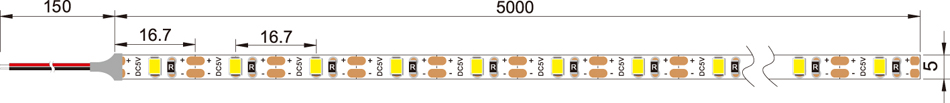 High CRI LED Strip Light - Slim 5V One LED Cuttable LED Tape Light w/ LC2 Connector - 543 Lumens/Meter.