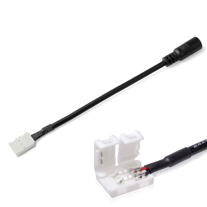 8mm Flexible Light Strip CPS Adapter Cable Clamp with 5.5mm barrel plug. Use for connecting NFLS-x Flexible Light Strips and Strip segments seen above. 23.62cm(9.3in) length.