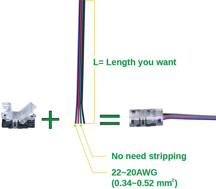 Non-stripping LED Strip Connector for Non-Waterproof IP20 10mm Wide RGB Strip Light,22-18AWG Wire Supported,Price for 10PCS Connectors.
