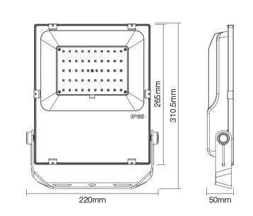 Dimensions 265mm (310.5mm) x 220mm x 50mm