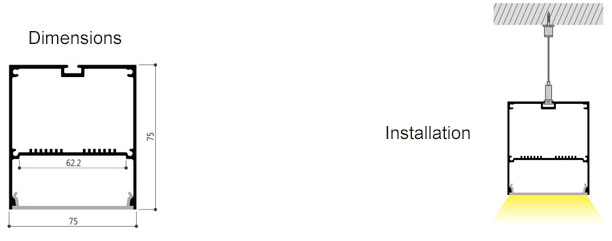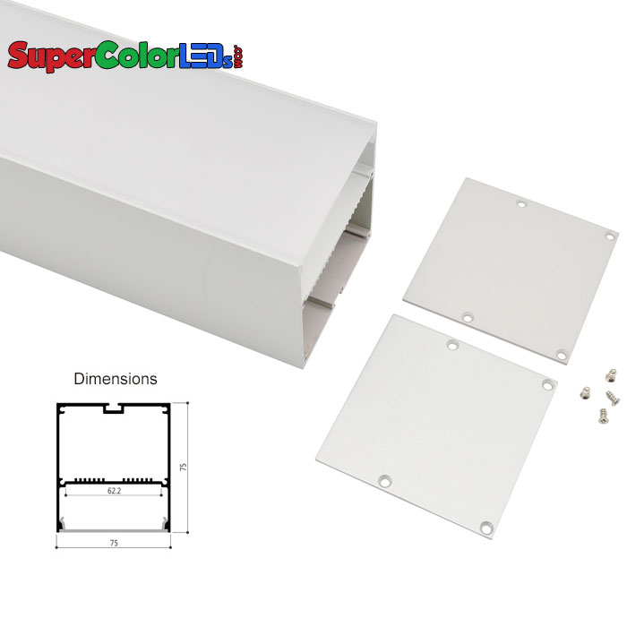 Pendant Profiles 75x75mm Low Profile Surface Mount LED Profile Housing for LED Strip Lights - Width 62mm LED Aluminum Channel System with Cover, End Caps