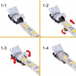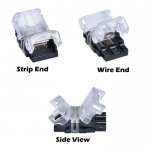 No need stripping wire insulation before connection (pierce-to-contact), really allow user to insert & press to connect with a 'CLICK'sound. Connect your led strip to power or dimmer without any soldering, just a pliers needed.