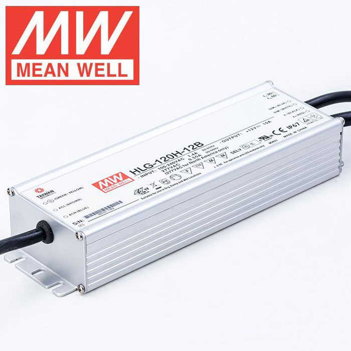 Mean Well LED Switching Power Supply - HLG Series 40-600W AC Dimmable LED Constant Current Driver - 12V DC, B-Type