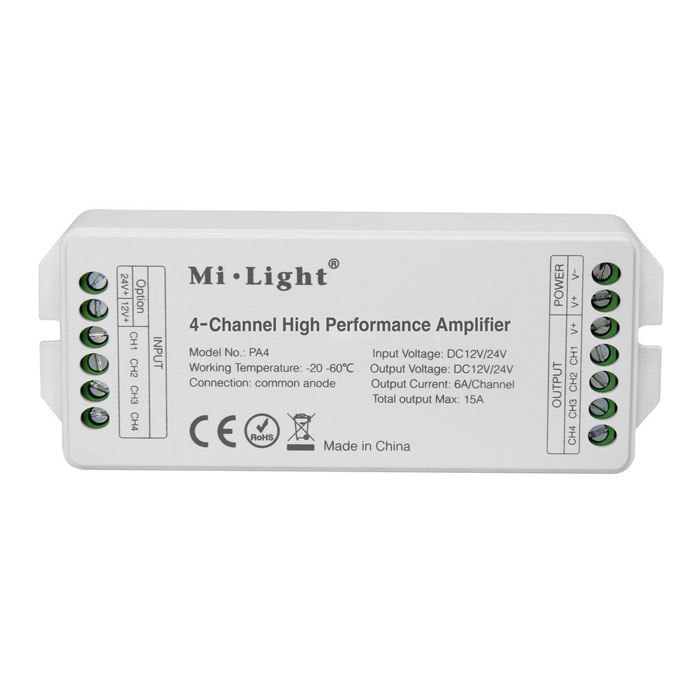 MiLight 4-Channel Hight Performance Amplifier DC 12-24V For RGB/ RGBW LED Strip Light - PA4