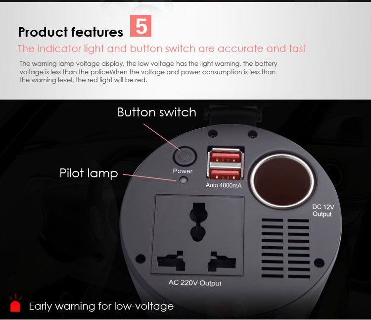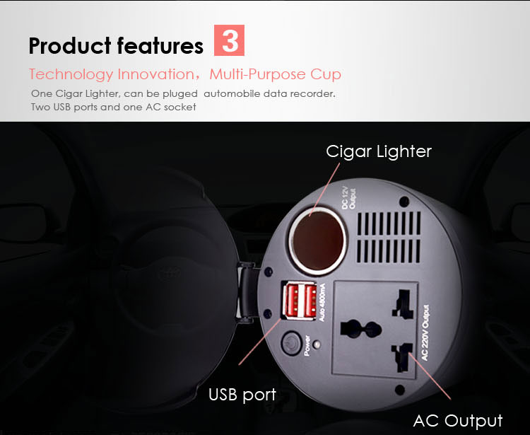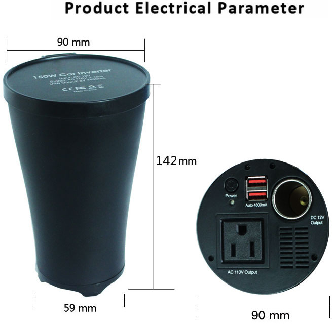 150W Cup Shaped Power Inverter converter 12V DC to AC 110V Car inverter with U.S socket USB 4.8A