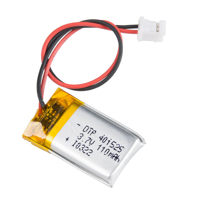 This is a very small, extremely light weight battery based on Lithium Ion chemistry. This is the highest energy density currently in production. Each cells outputs a nominal 3.7V at 110mAh! Comes terminated with a standard 2-pin JST-PH connector - 2mm spacing between pins. These batteries require special charging so please do not attempt to charge these with anything but a specialized Lithium Polymer charger.