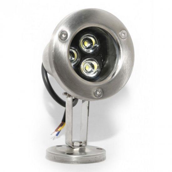 3W 90mm diameter round shape LED Under Water Light. With 3pcs 1W high power LED produces 300-400lm for pure white color. More colors as Neutral White-4000K, Warm White-3000K, Red, Green, Blue, Yellow and Amber available. IP68 waterproof light. Available in narrow spot (30°) or wide flood beam (60°) pattern. 30 degree narrow spot beam pattern for focusing on long range distances and 60 degree wide flood beam pattern for close but wide range illumination.