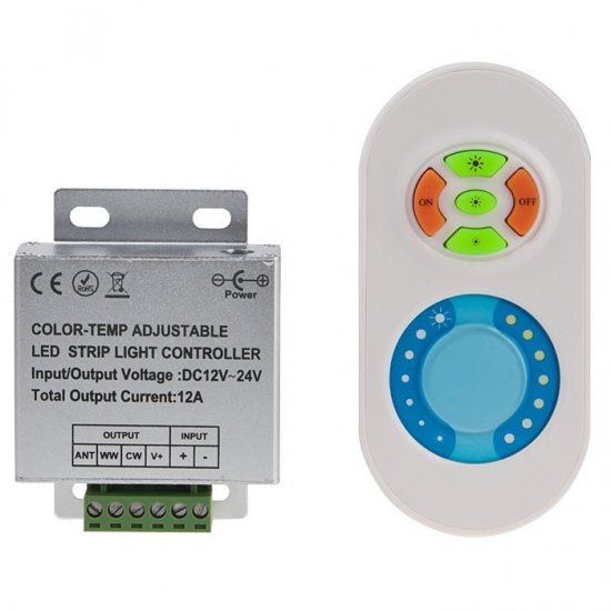 Variable White Color Temperature Touch LED Controller with RF Remote/ Brightness dimmable, 12-24V DC